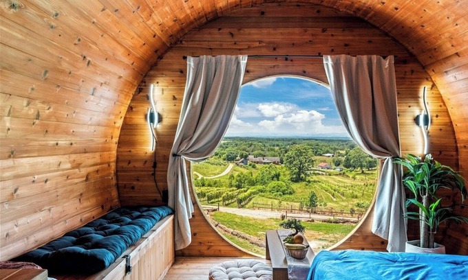 Charming Barrel on a Private Vineyard with Scenic Views and Hot Tub | Cabin in Jonesville