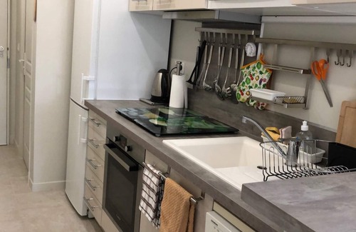 A sofa bed and air conditioning are featured at this 2-bedroom, 1-bathroom rental. The kitchen is equipped with an oven, a stovetop, and a refrigerator, as well as a coffee maker, an electric kettle, and a microwave. And there's access to laundry facilities, so you can even pack a bit lighter.