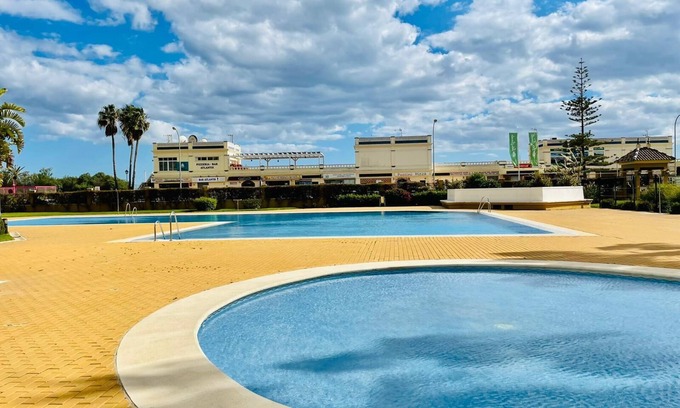 The property is right next to the beach and to lots of restaurants and a supermarket, has two swimming pools, tennis and paddle courts and children playground. Best location in Isla Canela.