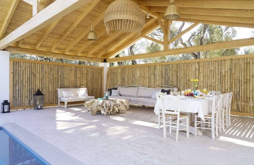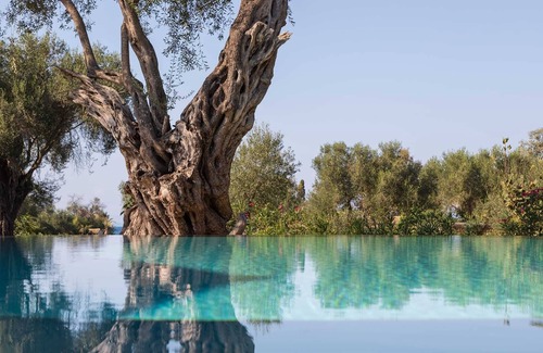 The combination of white and earthy tones is inviting. The tasteful wooden decor, from the stairs to the unique dining room ornaments and bathroom mirrors, will warm your heart and make you feel at home. This Corfu villa's ample spaces guarantee high-level privacy, while at the same time offering all the comfort of a luxurious villa for eight guests. The villa features 4 bedrooms and 4 bathrooms giving the flexibility to accommodate up to 6 adults and 4 to 6 children in 4 rooms or alternatively 8 adults and 2 children together with their parents in one room offering a mezzanine part.