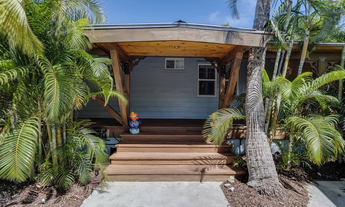Escape to this unique remodeled beach bungalow (2024), nestled in lush Florida eco-friendly landscaping, and just a 2-minute walk from a private beach.