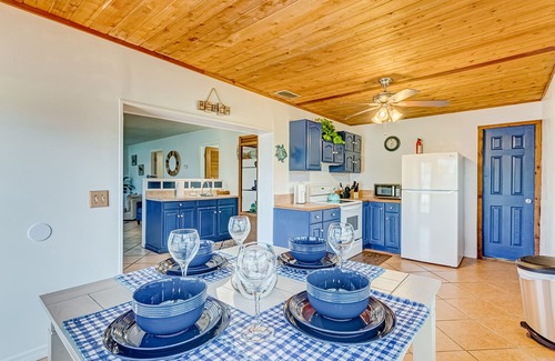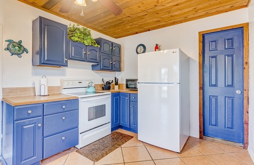 Adorned with splashes of blue and nautical decor, this charming retreat boasts a well-equipped, full kitchen with everything you need to prepare your favorite recipes. Dine together at the table for four or bring a few board games out for rainy day fun. Switch on the central air-conditioning and settle into the living area to stream your favorite channels.