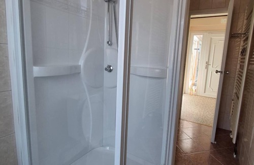 Mesanges bleu has a flat tv, radio, cd reader, iron, soap, shampoo, pads of coffee, milk, water, sugar, tea, coffee machine, electric kettle, cupboards, dishes, a bed and a commode in a precious wood, free parking, long chairs for the garden, a swimming pool for the dog. In the bathroom, you find a shower, a washbasin, two glasses and bath towels. All the material is in wood and original from the building of the house. What is more charming. Very quiet, near the wood.