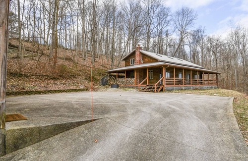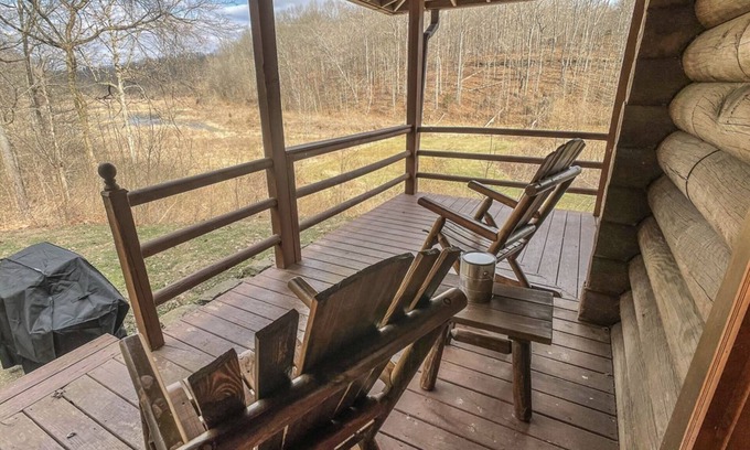 Vacation on this one of a kind, 10 acre secluded log cabin. Surrounded by nature with a lovely creek that greets you at start of the private drive. Don’t be fooled by the long driveway as you’ll spot the wrap around deck, perfect for morning coffee. Bask in the serenity and calmness this cozy cabin has to offer, while you kick back and relax in the hot tub. The interior is warm and welcoming topped off with a glorious chandelier. Lots of space to stretch out with an open floor plan. NO HUNTING ON THE PREMISES.