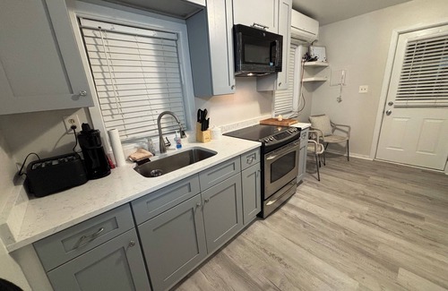 This cozy 1-bedroom tiny house is your perfect escape for work, relaxation, or intimate or outdoor gatherings. Ideal for remote work, weekend getaways, or small events (by special arrangement), the cottage offers a peaceful setting where you can recharge or connect with loved ones. Enjoy quiet mornings on the porch, productive afternoons, and peaceful evenings in a charming, private space. A hidden gem that's just far enough from the hustle, yet close enough for convenience.