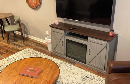 Get ready to relax in this 1-bedroom apartment in Woodstock. This charming space features a full bed, living/sitting area, coffee/breakfast nook, rustic wood floors and shiplap ceiling. We think our lovely apartment will help you experience everything Woodstock has to offer. Includes private entrance and private, covered parking.