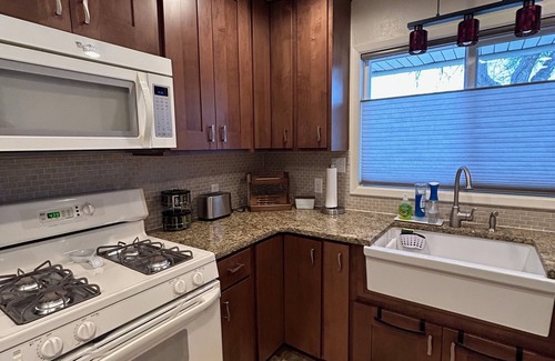 Sleeps 4-6: Bedroom 1: Queen bed | Bedroom 2: King bed | Additional sleeping: living room sofa pulls out to full size bed (bedding stored in sofa storage) | Extra blankets and pillows