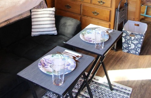 *Please note this bungalow is small. If the futon is not comfortable I have a queen air mattress you can use instead. Only saloon doors to bathroom for privacy. So be comfortable with each other! :)