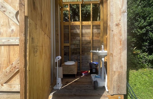 For added convenience, our premises offer spring-fed water, as well as an outdoor shower and toilet facility. Please note that parking is located below the site, requiring a short walk uphill to reach your cabin—a small price to pay for the secluded mountain experience.
