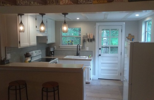 The remodeled kitchen has a well stocked pantry to ensure you have some memorable meals right from the start. Throw some burgers on the gas grill or cook campfire style
