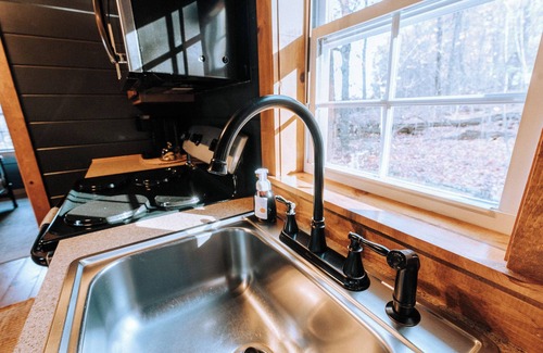 Stay comfortably in Beach City at this 1-bedroom cabin retreat: The Woodland at Creekside Dwellings. The cozy space features a queen bed, a bathroom with shower, and a small complete kitchen. Convenient amenities like a washing machine/ dryer and WiFi make it easy to bring your work if you must. It also offers a Private hot tub, fire pit with wood provided, porch rocking chairs, and a grill. You will park and walk across your own private footbridge to your little oasis. This is a superb spot for a relaxing solo getaway or a place to connect with someone special! The Woodland Cabin is set up with your rejuvenation in mind. Visit Amish country (We are on the outskirts of it), The Football hall of Fame (25 minutes), Dundee Falls for a peaceful nature hike (3 minutes), Or Just settle in and enjoy the cabin and all it has to offer! We hope you enjoy your stay at the Woodland Cabin at Creekside Dwellings. There is a private residence, as well as one other cabin on the shared lane. You have your own privacy and space.