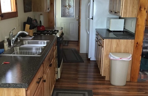 The cabin is a well kept charming summer vacation rental on Lake Winnisquam. It is perfect for couples or small groups looking for a relaxing time in New Hampshire. The cabin sleeps 6; bedroom with king bed, loft with two twin beds, and queen sleeper couch. An open floor plan with hardwood floors, furnished living, dining and equipped kitchen area, hearth with wood stove, utensils, linens, wifi, and TV, - this cabin has everything you will need. A deck with gas grill, table and sitting area and a screened in porch with views of the lake. Cabin is set back from the lake, nestled in the woods, just a short walk down to your own private dock. Dock is equipped with table and chairs and whips for securing your boat.