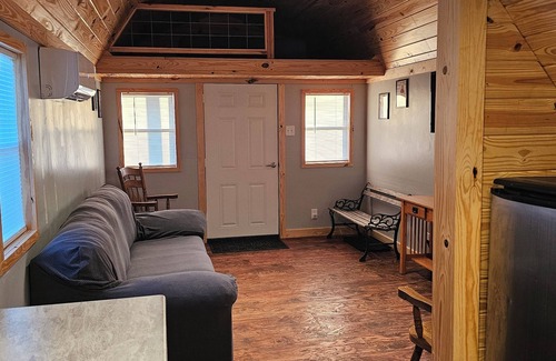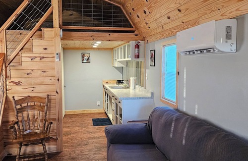 Your cozy getaway awaits on Toontucky Farms at this delightful cabin, overlooking the Morton's Gap valley. Guests can unwind and relax with the option of petting, feeding, and brushing the animals at the petting zoo. This gorgeous retreat features 1 loft bedroom with a full bed, a bathroom with a shower and hair dryer, and amenities like AC and heat. The property includes a large pavilion. two fire pits (a covered and uncovered one), small playground, and a walking trail. We'll be available to answer any questions while you stay at our place. See more pictures of the animals and property at www.toontucky.com.