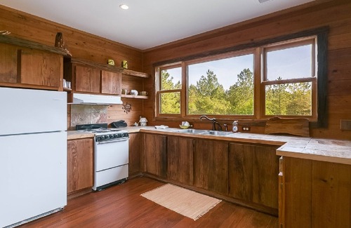 Looking to explore Coastal Georgia? Need a quiet place to unplug, relax, and recharge? This rustic cabin offers luxury and ammenites and is perfect for a romantic getaway, family reconnect trip, or weekend girls/guys vacation. It is located on 9 scenic acres that offers trees with hooting owls nestled in them, a tall bluff that meanders down to a long boardwalk that takes you through a cypress forest that ends at the Satilla River. At the river you can relax and just sit back and watch nature or read a book. We are a quick drive to top notch fishing spots. This cabin is off a 2.5 mile dirt road and 15 minutes to the closest restaurant and grocery story so expect to find peace and quiet and relaxation here. It is easy access with any vehicle despite the dirt road (which is county maintained regularly) and centrally located to Jekyll Island, Cumberland Island, Jacksonville, Brunswick , Okefenokee, and the Golden Isles. This cabin offers modern conveniences like DISH TV, a DVD player, and WIFI. It has been stocked full with movies, books, and games to help your family reconnect and relax. The cabin offers a spacious bedroom with queen bed, a private bathroom with custom slate floor and walk in shower. There is a fully stocked kitchen and a spacious living room that has a queen size futon. There is two windows seats perfect for cozying up to a good book. There are stairs to access the cabin. There is a private outdoor area behind the cabin with a firepit and outdoor seating and a grill. There is also a shared outdoor space consisting of a covered pavillion with picnic table, an additional grill, and an additional firepit with more seating.