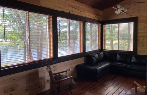 Located in Bitely, this cabin is a dream. With a brilliant bedroom featuring a cozy queen bed, a refreshing shower, and a perfect living room with large L sofa for extra sleeping space, this place is perfect for guests looking for a relaxing getaway or tune up their Pickleball game. Extra guests can camp in a tent or any size camper or RV to have as many Pickleball partners as you'd like for a week or weekend of extended playing time indoors!