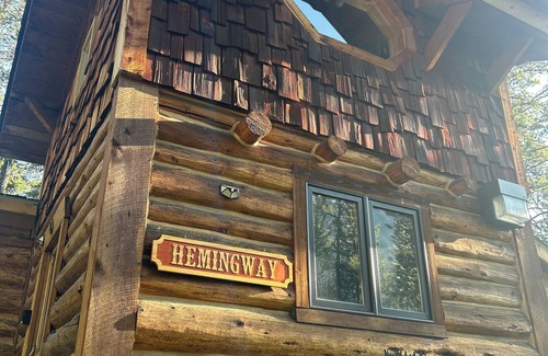 This cabin is located in a relatively secluded area just a stone's throw away from the highway. This cabin listing is for the Hemingway cabin further inland from the highway. In this cabin, there is one lofted bedroom (no door) with a full bed in the upstairs, along with a desk. There is also a futon downstairs. There is a bathroom with shower stall and a small kitchen with all the dishes and utensils you need to make meals. There is a second cabin on the property, so please be prepared to have neighbors. The Walden cabin has a kitchen, bathroom and lofted bedroom (with full bed), and is directly in front of this cabin. If you have a small group, you can rent one of the cabins individually for the listed price or for larger groups, book both cabins by messaging us directly (dependent on availability). The cabins conform to the "tiny house" movement, but are fully equipped and very comfortable. We recommend no more than 2 guests for the lower cabin and 3 guests for the upper cabin. MAX occupancy is no more than 6 persons using both cabins. Please report actual guest numbers including children. Additionally, the stairs up to the lofted bedrooms are quite steep, but there are handles. Full standard washer available, sorry we don't have a dryer.