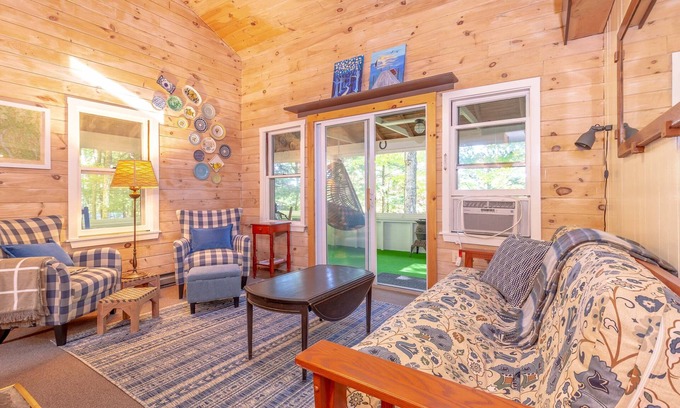Rustic Camp near Lake Pennesseewassee. There are 2 bedrooms, a wrap-around deck, kitchen, living room, bathroom, and an upstairs loft with 2 beds accessible with a pull-down latter. There is a deck and grill in the outside yard. There are some obstructed views of the lake but no direct access to the lake from the cottage. There is a public beach and park with free parking about a mile away. Five minutes to shops and restaurants in downtown Norway. Plenty of boating and hiking to enjoy!
