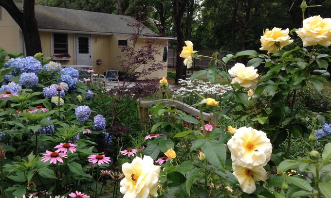 Sweet one bedroom cottage tucked away yet very convenient to beaches, shops and restaurants. Relax and enjoy the quiet ambience of Brewster. There is a fully equipped kitchen, living room with queen sleep sofa, full bath with tub and shower and a separate bedroom with queen bed. There is a private patio with gas grill and picnic area. The yard is quiet and shady with lots of flowers. You can easily walk to beaches and shops and we are right on the famous Cape Cod rail trail where you can bike from Dennis to Wellfleet, Harwich to Chatham with stops at beaches and villages along the way. Enjoy old Cape Cod with the conveniences of today. This cottage is one of 3 similar vacation cottages on the property. $35.00 flat fee for linens or bring your own.