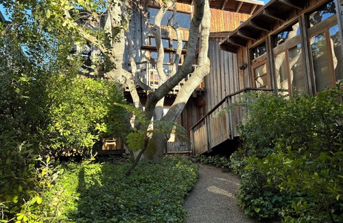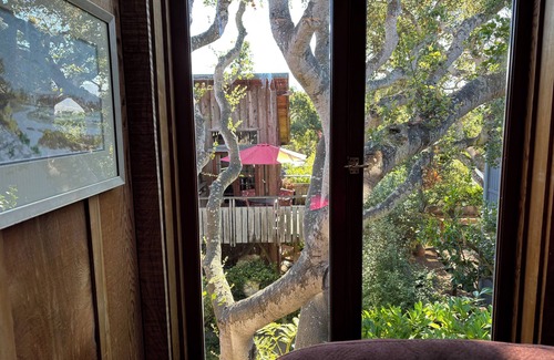 Cypress Hideaway is the perfect location on Carmel Point, just 2 blocks from the famous, white-sand Carmel Beach, and 3 blocks from Carmel River Beach in a quiet neighborhood. It is a lovely multi-level, redwood home with high open-beam ceilings that is spacious yet retains a cozy feel. It has a wood-burning fireplace, unique with a log built into the hearth area that came straight from Carmel River Beach about 40 years ago. It was designed and built with a love of nature, in a 'U' shape surrounding a large California Oak tree that sits beautifully in the center portion of the property. A lovely, large hedge of Cypress trees offers the utmost feeling of privacy in the yard and house. The house has a nice front sitting patio, beautiful for morning coffee, a deck off the master bedroom, and another patio off the 3rd bedroom/studio. Cypress Hideaway has 3 nicely-sized bedrooms (one king bed, and two with queen beds), and 3 baths, one with a sunken tub above which is a skylight where you can gaze at the stars above. It has a small, but fully functioning kitchen with all new appliances, dishes, utensils...etc. Located within walking distance from the historical Carmel Mission, downtown Carmel with myriads of shops and restaurants to enjoy, and Carmel Mission Ranch dining overlooking Carmel River Beach. Cypress Hideaway is a perfect vacation get away for families with children ages 6 and older, or couples wanting to experience the beauty and charm of Carmel living.