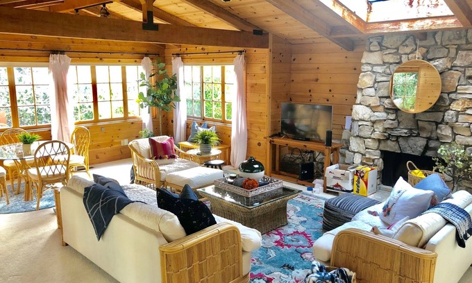 This delightful Carmel cottage has been updated with modern amenities while retaining its original architectural integrity. The spacious sun-filled living room has a beautiful stone fireplace, vaulted ceiling, and skylight. It's the ideal space for everyone to gather and relax after a day at the beach. There is a separate inviting dining area. The charming sky-lit kitchen has been updated with new stainless steel appliances including Samsung gas range, microwave, and refrigerator. The breakfast nook has French doors leading to a secluded deck surrounded by greenery. One bedroom has a Queen bed and an en suite renovated bathroom with tiled shower. The oversized upstairs second bedroom has a king-size bed. The hall bathroom has been updated with classic Heath tile flooring and tiled combination tub/shower. The private Carmel stone patio is surrounded by flower beds. There is a single carport for covered parking, and ample additional street parking readily available. A little-known footpath, the "Jane Powers walkway", leads down to the gorgeous white sand beach. It is only a five minute walk to town, with famed shops and restaurants.