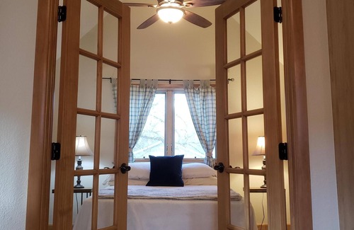It's time to plan your 2025 vacation spot, family visit, or work-on-the-road stay! Why not spend it in Lyons, Colorado? Make your reservation soon and come stay with us! We would love to meet you! Located in the charming little town of Lyons, our beautiful, one bedroom carriage house is in it's own private building. It is completely furnished. No need to bring anything but clothing and personal items. The place includes a queen bed and comfortable, full-size, foldout couch. Under-eave closets provide extra storage areas or a fun hideaway for children. The kitchen is equipped with a refrigerator, dishwasher, toaster oven/convection oven, microwave, double burner, electric skillet, and an "insta-pot". There is a washer/dryer, TV, private carport, walk-out balcony, and use of outdoor grill and hot tub.