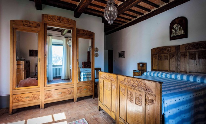 This classic four-level casale is surrounded on three sides by nearly 9,000 square meters of land. You'll have exclusive access to the entire top floor, composed of two independent, fully furnished suites, ideal for families or small groups traveling together. The units share a large garden and a panoramic pool — a peaceful haven for relaxing under the sun or the shade of ancient trees.