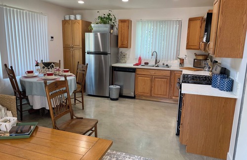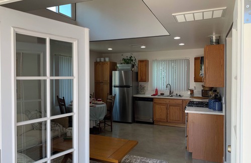 Located in Fullerton, enjoy what this 1-bedroom cottage has to offer. This charming property features a cozy king bed, a well-equipped bathroom with a shower, and even a bonus office space with a bunk bed perfect for kids. Guests can relax in the welcoming atmosphere, take advantage of the WiFi, and feel right at home with amenities like AC and a washing machine. Experience what Fullerton has to offer with a stay at our pleasant cottage. Located near Disneyland, Knott's Berry Farm, Cal State Fullerton, Fullerton College, Hope University, Downtown Fullerton, around 30 minutes away from beaches.