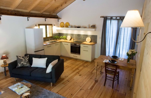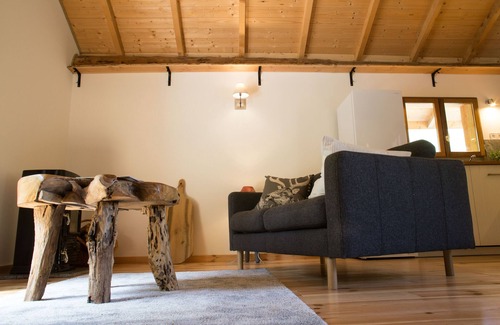 Gorgeous, spacious chalet for two, next to a stream, with secluded terrace facing into the woods at the back and spectacular mountain views to the front. Fully equipped kitchen with dishwasher, oven and induction hob, cosy bathroom with underfloor heating and comfy sitting room with wood burner. Situated in the Maurienne Valley, in the heart of the French Alps. Perfect for a whole range of Alpine adventures and activities.