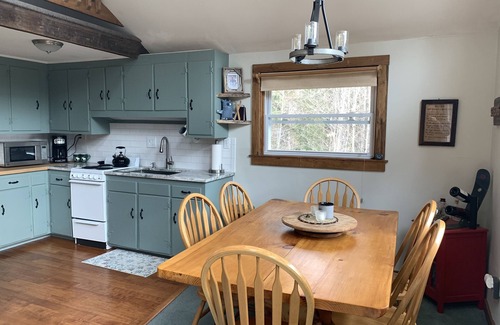 Our kitchen, though small, is well stocked with everything you will need. It is open to the dining room and family room with a gas stove, along with a TV, streaming device, plenty of DVDs and board games. Curl up by the fire with a good book, put on a movie or have game night.