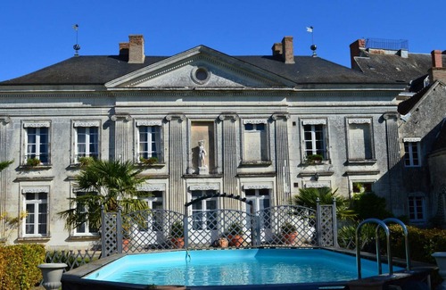 It has 4 bedrooms forming 2 apartments (3 double beds, 2 single beds) - Large bedroom on the 2nd floor (1 160 cm bed and 1 single bed) - 2 bathrooms - 3 shower rooms - 2 toilets. On the ground floor: living room - dining room - kitchen - laundry room - toilet. Garage. PLEASE NOTE IF ANIMALS CLEANING PACKAGE OF €150 MANDATORY. SWIMMING POOL OPENING: from 06/15 to 09/15. This rare Directoire castle, with antique furniture, offers you "The castle life" in the heart of the Centre region. Close to the castles of the Loire, Loches, Valençay, Chambord, ... Futuroscope, Beauval Zoo and the romantic Berry of Georges Sand and Chopin, as well as the Brenne regional park. Entirely reserved for its guests, this authentic and spacious residence will make you live unforgettable moments. Its main courtyard, its park, its above-ground swimming pool... the fully enclosed complex, in the city, offers you the tranquility of an exceptional place less than 40 minutes from all the sites of interest in the Centre Val de Loire region.