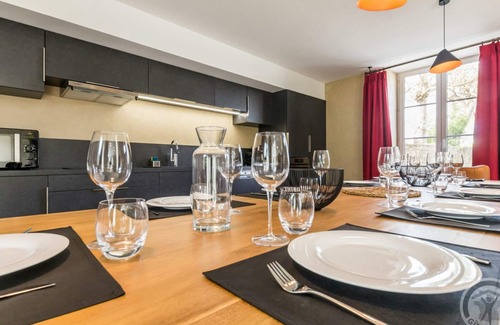 Detached house. Entrance hall. Large living room with lounge (TV, internet access), dining area and equipped kitchen area (oven, dishwasher, microwave, freezer...). Wc. Bedroom 1 accessible to people with reduced mobility (160X200 bed) with private shower room and wc. On the 1st floor: bedroom 2 (1 160X200 bed), bathroom with wc, landing with play area, bedroom 3 (1 160X200 bed) with private shower room, wc, shower room and dormitory room (3 X 2 bunk beds 90X200). Baby equipment on request. Sheets and towels provided. Underfloor heating included. All charges included. Cleaning service included in the price. Private enclosed garden. Terrace. Garden furniture. Barbecue. Private enclosed courtyard. Laundry room (washing machine, dryer). Parking. 1 pet maximum allowed. At the eastern tip of the Cotentin Peninsula, this former presbytery, renovated in 2020, is remarkable. Boasting a prime coastal location, it offers a magnificent accommodation option for large families or groups of friends who wish to settle down in this part of the world and share some comfortable moments. Upon entering, the imposing stone staircase recalls the long history of this important village building, but a modern home has been designed here, with large south-facing windows and completely redesigned spaces. With a bathroom in each room, this residence facilitates group stays while still remaining chic and upscale, featuring high-quality amenities and materials. This project, led by the town's residents, is an invitation to discover the heritage treasures of this region nestled between the sea and market gardens.