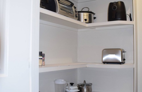 - Fully equipped kitchen with a full-sized stovetop oven, a microwave, a full-sized refrigerator/freezer with ice maker, Keurig single cup coffee maker, coffee pot, air fryer, crockpot, toaster, hand mixer, blender and much more!