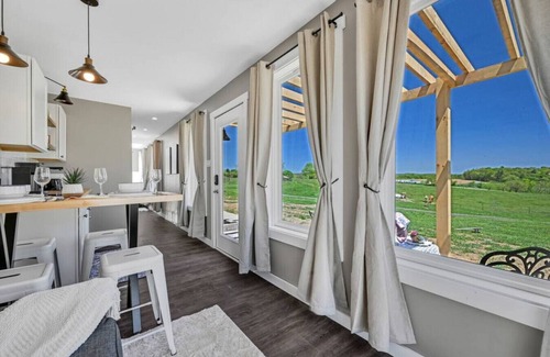 This unique Charming Container Getaway Amidst Rural Serenity offers an idyllic setting for wedding stays, providing an unforgettable experience surrounded by nature's beauty.