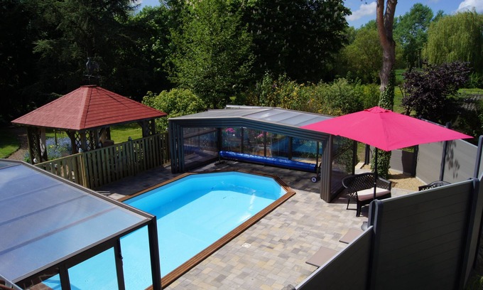 The property's swimming pool is at your disposal every day from 10 a.m. to 1 p.m. and from 3 to 9 p.m. It is heated to 28 ° and covered which allows swimming in all weathers. In good weather, the shelter is open and a beach with deckchairs is available.