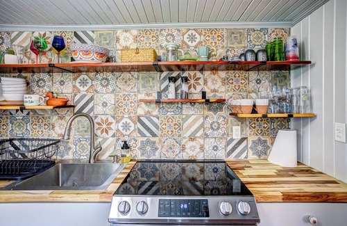 Swimming, kayaking, paddleboarding, and fishing!! Located in peaceful Holiday Shores in Titus in Weoka Creek Slough, this quaint, fully remodeled lake front cottage has a beautiful covered patio (with kid/pet gates at each entrance) perfect for morning bird watching, afternoon cocktails, and a sunset dinner. It is next to the community boat ramp and has a very large circle driveway to hold multiple vehicles with boat trailers. With 2 bedrooms, including 1 queen bed and 1 full bed, it's the perfect size for a small group of guests. The welcoming living room offers beautiful views of Lake Jordan and an additional sleeping space with a pull out queen sofa bed. You'll find all the essentials you need, like a full equipped kitchen, WiFi, and ample of on site parking, to ensure a comfortable stay. The bathroom features a shower with a rain shower and a shower wand. The grounds have fully mature trees for lots of shade throughout the day and has plenty of locally sourced native plants which attract lots of butterflies and birds. There is a gas grill and an electric smoker on site to cook your daily catch, if you are an angler. Bring your boat, there is a new dock with fenders and pop up cleats to tie it up. Have an electric vehicle or a live well on your fishing boat, there are plugs for both of those in the driveway. Located less than 20 minutes from Downtown Wetumpka, we think our place will help you experience everything Lake Jordan has to offer.
