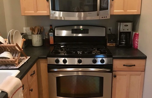 Quaint cedar shake cottage perfect for a couples getaway. Bright open floor plan, comfortable and tastefully furnished. Gas fired stove in living room provides warmth and ambiance while the queen size bed is incredibly comfortable. Great galley kitchen fully equipped with everything you need to prepare your favorite meal or if you're not in the mood to cook, you will find three great restaurants within walking distance and two other eateries only a few miles away. Also, just a short walk to a grocery store that has everything you need including fine wines and a state liquor store. Jay Peak is only 8 miles from door to door. Easy parking.