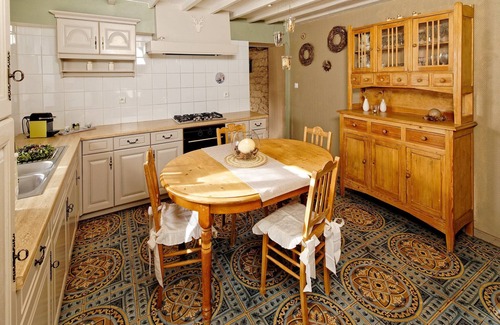 Inside, the cottage-style kitchen is fully equipped with modern appliances, while the living room offers an ethnic-inspired ambiance with global décor, an open fire, flat-screen TV, and a cozy office nook. Upstairs, the Colonial Suite has a king-size four-poster bed and a reading corner, while the Romantic Room includes a double bed with a peaceful view. The renovated shower room is located next door.