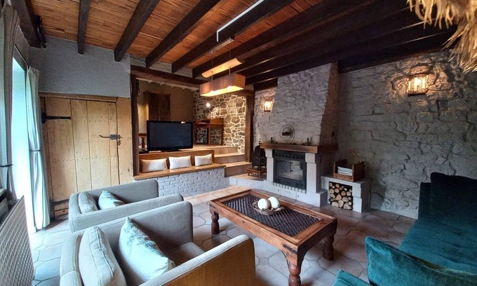 La Ferme d'Amélie is a charming retreat tucked behind an 18th-century church in a peaceful village in the Ardennes. This confidential hideaway adjoins the owners’ home and opens to a flowerbed, a bluestone terrace with a barbecue, and a lawn that stretches toward pastures and ancient forests. The moment you arrive, the warm, curated interiors invite you to unwind.