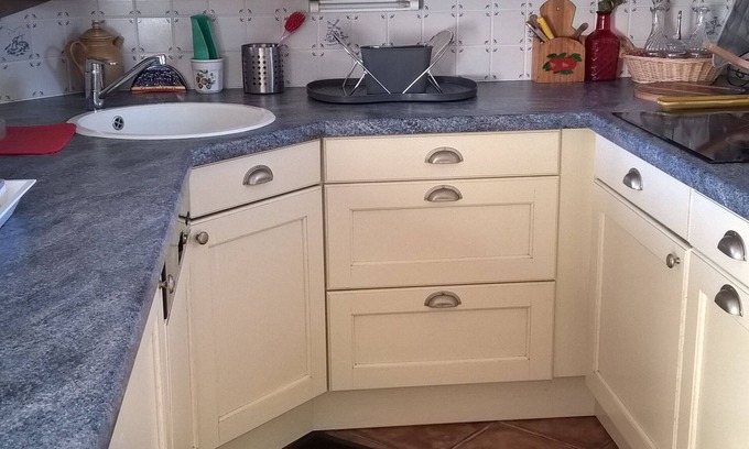 45 square meters of charm for this comfortable cottage. On the ground floor a beautiful kitchen with bar area, comprising: an oven, a microwave, fridge, freezer, dishwasher. kitchenware (full) new hob -Ceramic ... For maintenance, a vacuum cleaner and cleaning kit. But a fee of 40 euros is accepted for a household made by the owners, if you prefer, at the end of the stay.