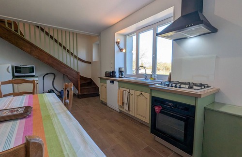 Equipped kitchen with dining area, ideal for sharing convivial moments