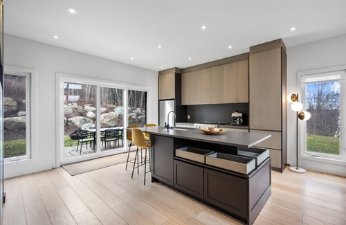Large country house ideal for six (6) people. The master bedroom has a king-size bed and the second bedroom has a queen-size bed. We also furnished the upstairs open space with a bunk bed (queen-over-queen bed). The house is fully equipped and features a high-end espresso machine, a dishwasher, a gas fireplace, a gas stove and a hot tub with breathtaking views of the village of Frelighsburg.