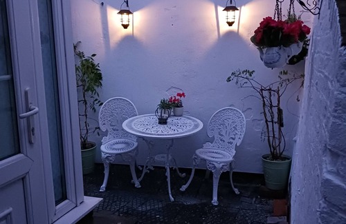 The utility attached to the kitchen comes with washing machine, dryer, vacuum, iron and iron board and leads to the small outside space with table and chairs.