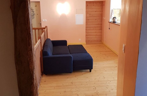 Nice cottage in a renovated old building, quiet, in the heart of the Jura, near lakes and vineyards, several hiking trails 500 meters from the cottage, and the possibility of coming by train, the train station is 2.5 km, you are also 7 kms from exit nro 7 of the A39 motorway and close to Poligny, the capital of the cheese "Comté" It has a kitchen open to living room, a sofa bed two places, a room with double bed and a bathroom with toilet, washing machine and a parking space. You have access to a common hall for bicycles.