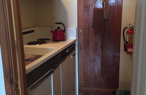 Enjoy this private and cozy cottage perfect for accommodating one or two guests in downtown Dorrington! Nestled in between large trees but also overlooks a beautiful expansive 2-acre meadow. Located just steps away from the historic Dorrington Hotel and the acclaimed Lube Room Saloon, this cottage has the basic amenities to enjoy a relaxing, quiet get-away. There's a kitchenette with a 2-burner stove, mini-refrigerator, microwave, and a toaster oven. Cottage comfort also includes plush bed linens and towels, a gas fireplace as well as a wall heater, free WiFi, and a combination shower/tub.