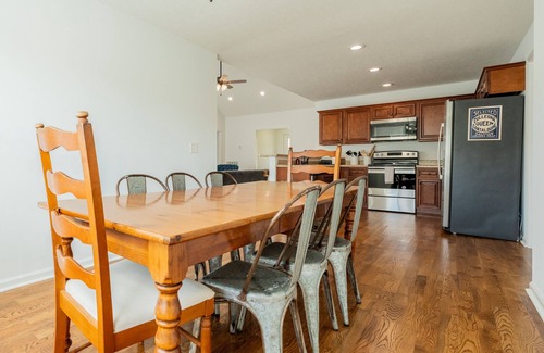Our primary bedroom includes a king sized bed with all linens and pillows priovided. Our two bunk rooms can accomidate 8 guests in twin sized bunk beds. There is a private back deck and huge back yard (over 2 acres). The kitchen features modern stainless steel appliance and the laudry room has a stackable washer/dryer for convenience during your stay.