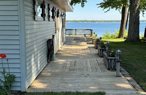 This cute cottage has recently been redecorated and will delight you with its charm. It features two skylights, a large expandable dining table, full kitchen with dishwasher and microwave. There is a pleasant laundry room with washer and dryer. The two bedrooms have new maple hardwood floors. The bathroom has a large shower stall, corian countertop, and freshly laundered thick towels. The living room has a fireplace, pull-out sofa, comfortable leather reclining chairs, TV w/ DVD/VCR, with a firestick for streaming. You will enjoy panoramic views of Lake Missaukee from the dining room, kitchen, and large deck. Enjoy our sandy beach, raft, and campfire pit. Lake Missaukee is great for fishing and swimming. Our sandy bottom beach is perfect for kids.