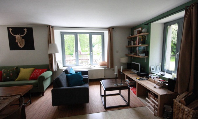 Charming Ardennes cottage (former farm outbuilding), situated a good distance away from any other houses, characterised by its peace and tranquillity. The cottage is surrounded by a large enclosed garden, is on the edge of the forest and close to the river.