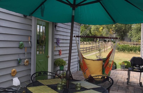 Enjoy a relaxing feel of this Miniature Horse Farm, a rare find in the city! Located conveniently to shopping,dining and entertainment. Relax on our farm overlooking the view of horse's grazing,small orchards, tennis court and mini vineyard. The space feels private and cozy. Decor is Cottage Chic with a modern twist. A large kitchen space with a large area, big screen TV with ability to log into Netflix and other accounts. Also have DVD's for adults and children, puzzles & games.