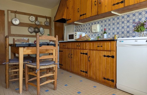 Detached house at the entrance to a charming town dominated by feudal ruins, in a quiet location yet close to all amenities (restaurant 50m away, pharmacy and supermarket 100m away, etc.).