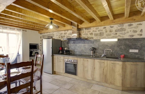 Gîtes of 172m² on 3 levels. Ground floor: kitchen open to dining room with pellet stove and relaxation lounge, TV lounge, laundry room, shower room and WC. 1st floor: 3 bedrooms (1 bed 140 / 1 bed 140 / 3 beds 90) - 1 master suite (1 bed 160) with complete and private bathroom - shower room - WC. 2nd floor: a bedroom with 3 beds 90. In the heart of a quiet hamlet, with a view of the Forez plain and the Alps, discover this old stone farmhouse entirely renovated with taste, comfort and authenticity of yesteryear. The house offers quality equipment, beautiful room volumes, a warm atmosphere and personalized decoration. You will benefit from an enclosed and paved courtyard of 100m² facing due East and a landscaped garden. For more comfort, the charges are included in the rental price. Available for rental for up to 7 people only in gîte 1195.